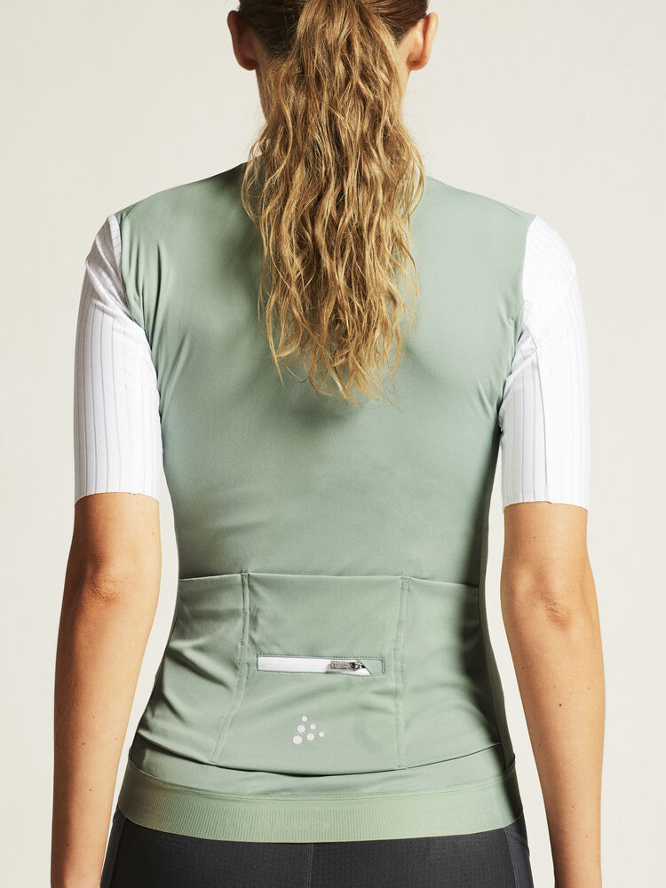 Ce maillot haute vitesse innovant à coupe très ajustée comprend des panneaux de tissu à cartographie du corps avec différentes structures de surface (structure cannelée sur les manches et structure unie sur le corps) pour augmenter le flux d'air et réduire la traînée. De plus, le maillot comporte avec des manches extra-longues avec des extrémités épurées à coupe brute. La bordure élastique à l'ourlet inférieur arrière maintient le maillot en place même pendant les sorties intenses.