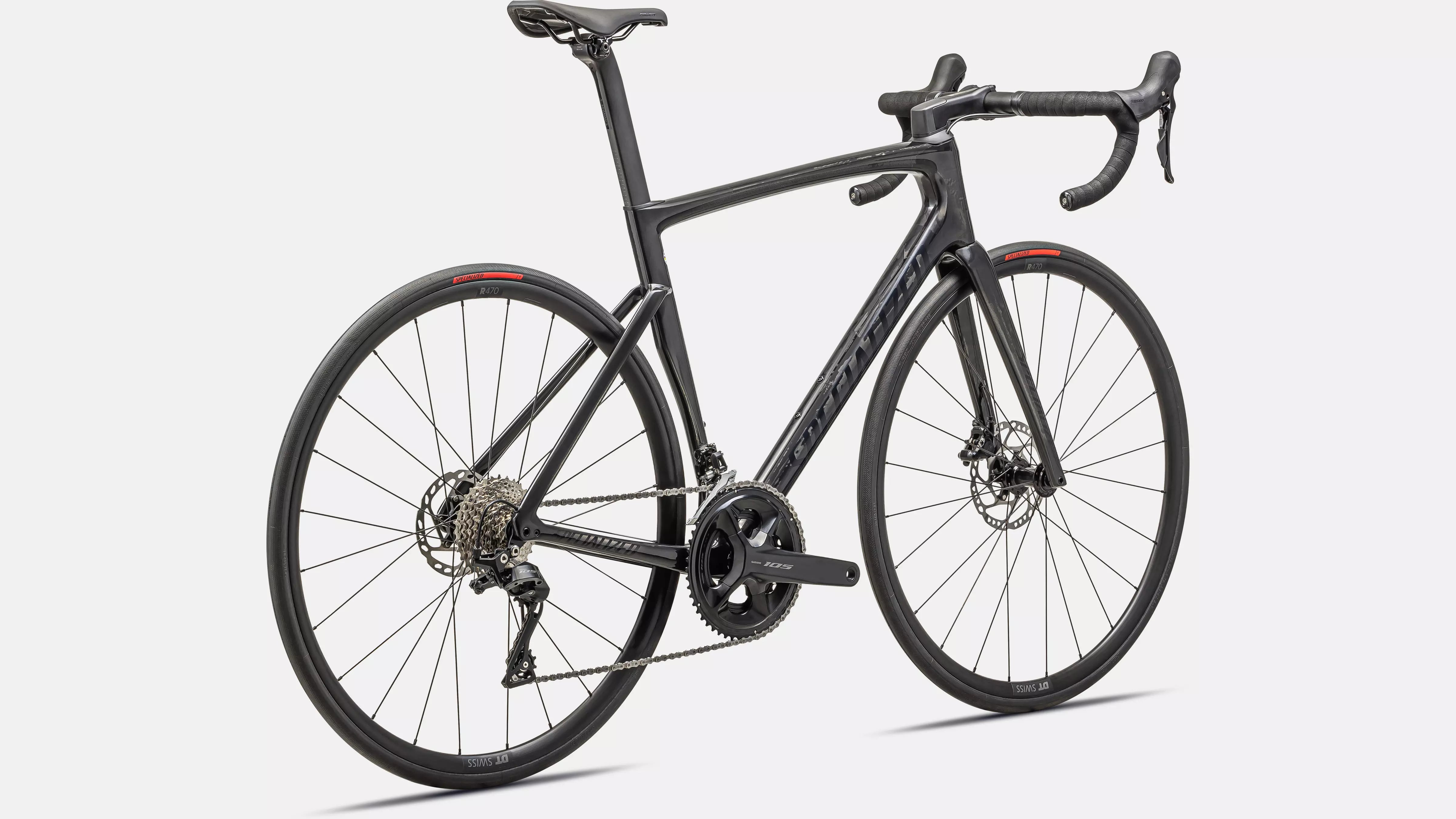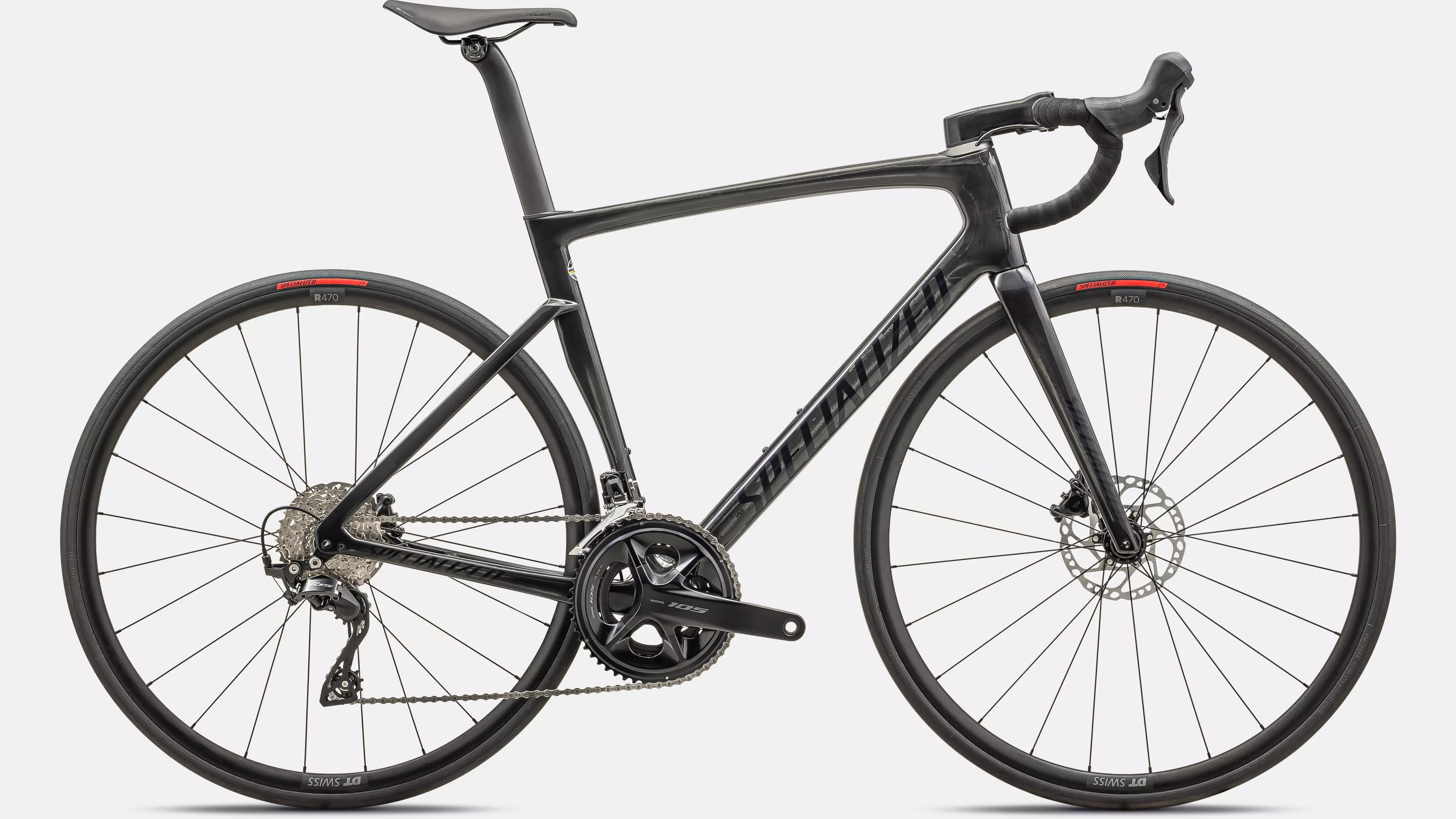 Ce Tarmac est livré avec des composants éprouvés : transmission Shimano 105 11 vitesses combinée à des freins à disque hydrauliques, une paire de roues DT R470 Disc et notre selle Power.